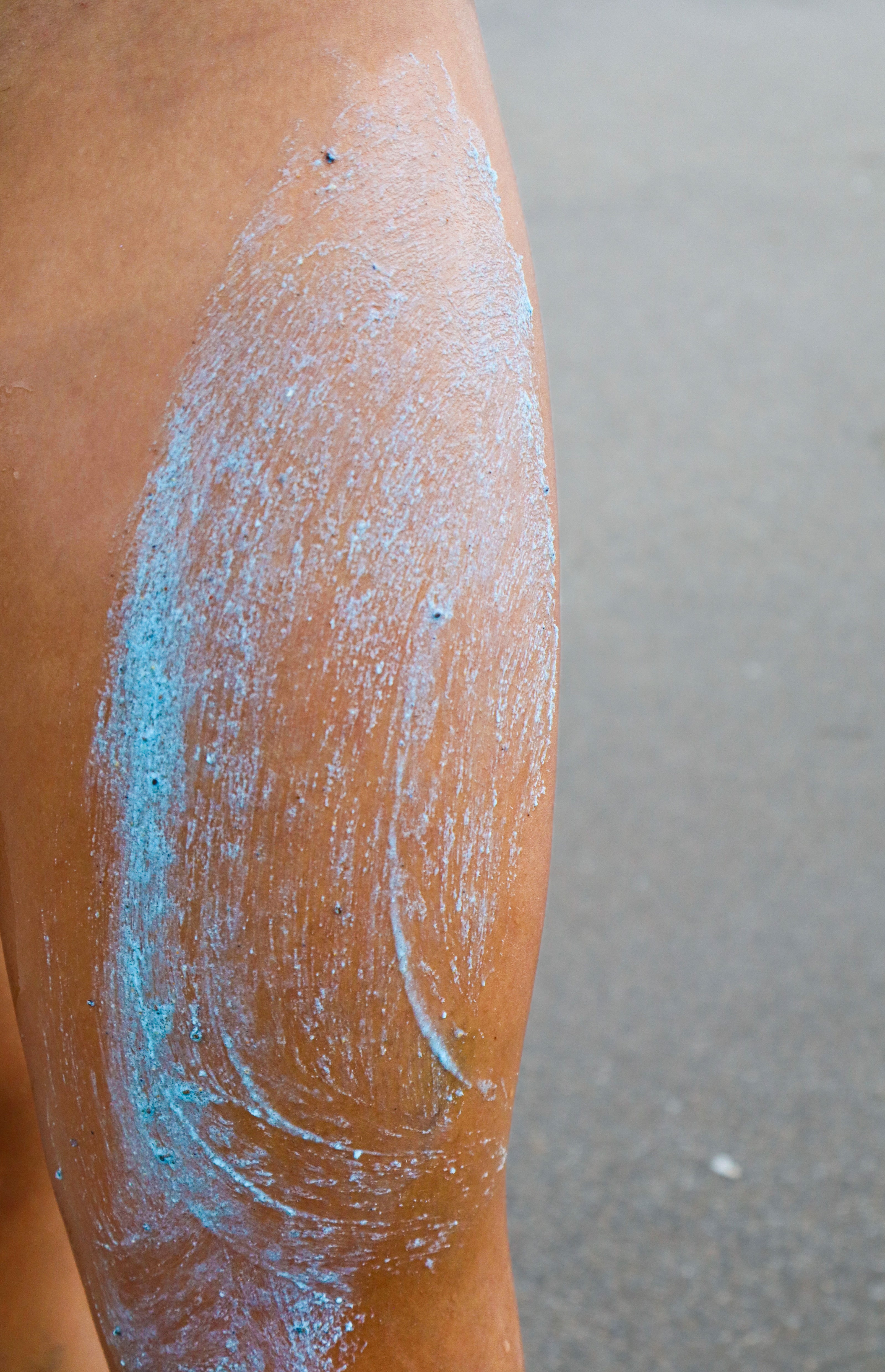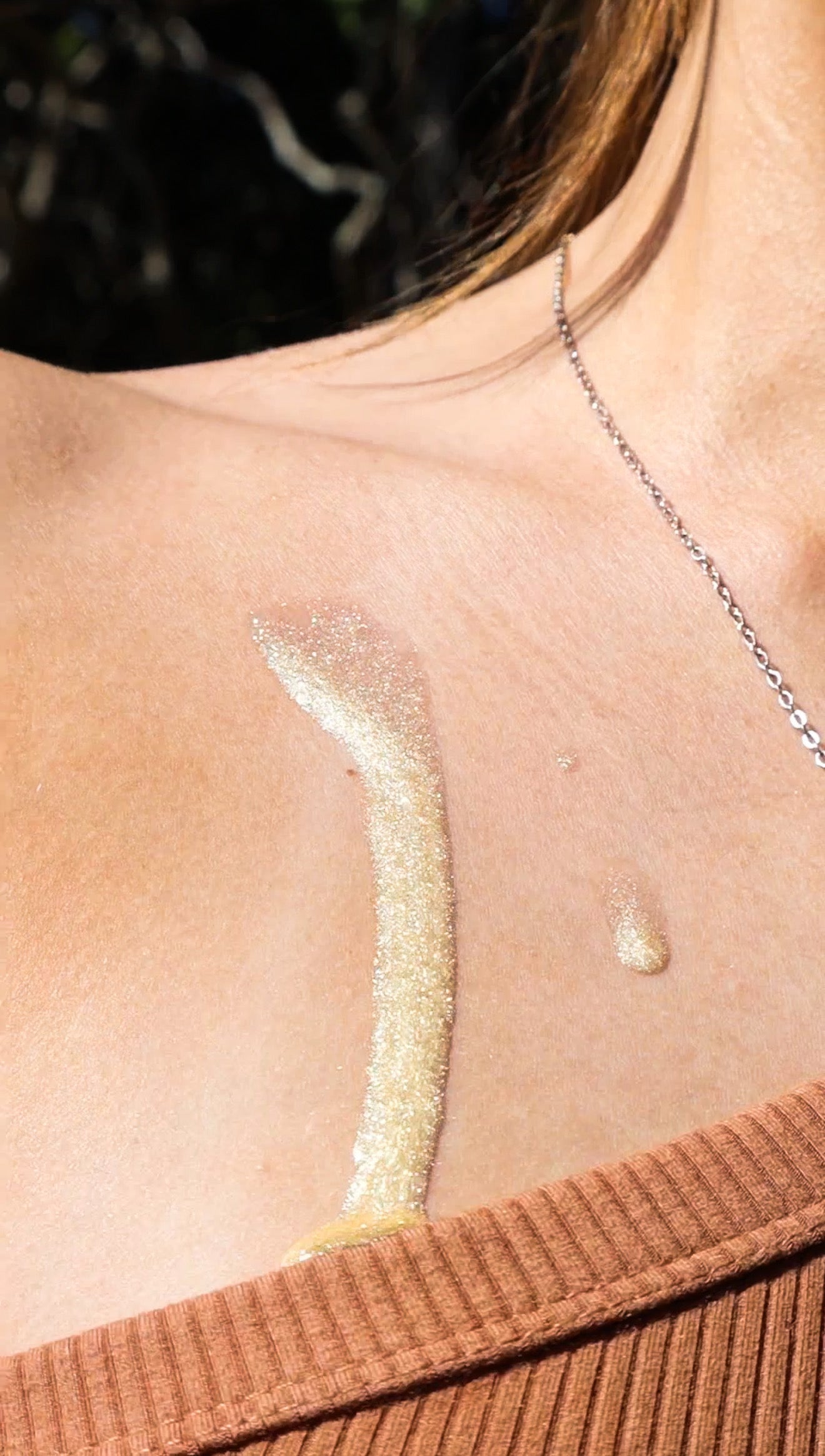 The body oils contain a natural form of shimmer. Which does not contain any plastic ingredients. All you need is soap and water and you'll be all good to go!